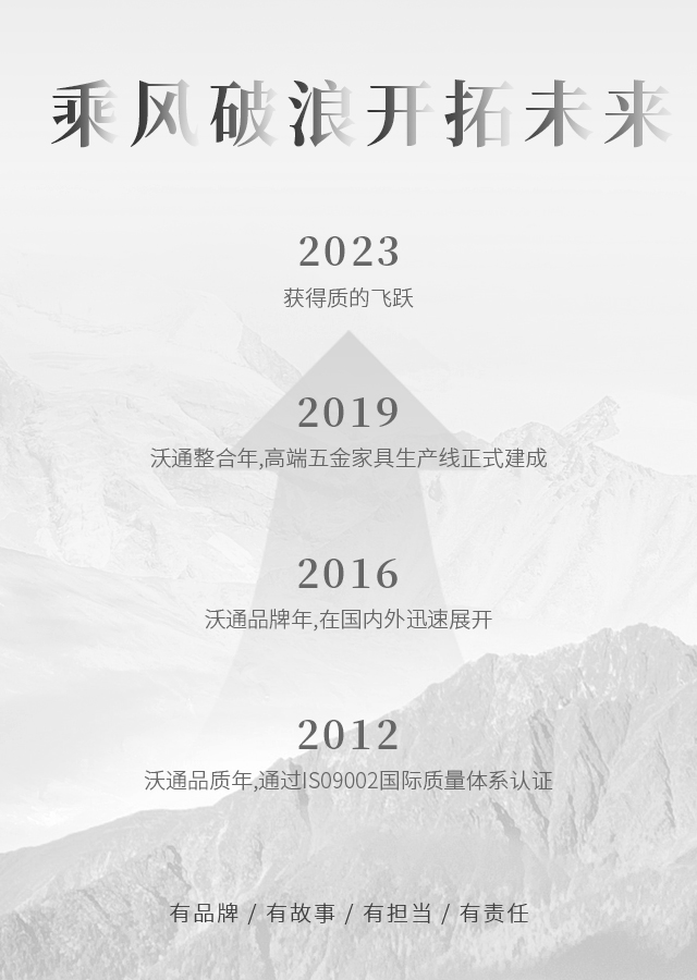 沃通五金將積極弘揚(yáng)中國家具文化,綜合國際家具潮流,運用無限的創(chuàng)意,設(shè)計生產(chǎn)出大量造型美觀,引領(lǐng)時代潮流的新產(chǎn)品。